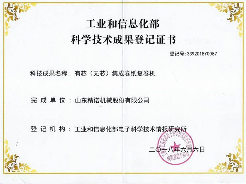 科學技術成果登記證書